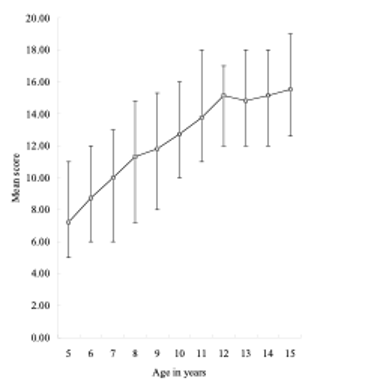 Figure 1 Mean scores in verbal working memory across childhood (figure courtesy of Susan Gathercole, adapted from Alloway & Gathercole, 2008)