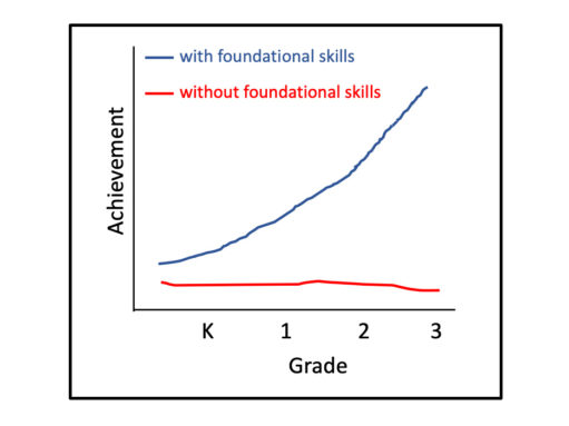 Figure 7. An illustration of Matthew effects in reading. Children who begin formal schooling with foundational (emergent literacy) skills tend to build on those skills and thrive, whereas children who begin formal schooling without foundational skills tend to continue to fall further behind.
