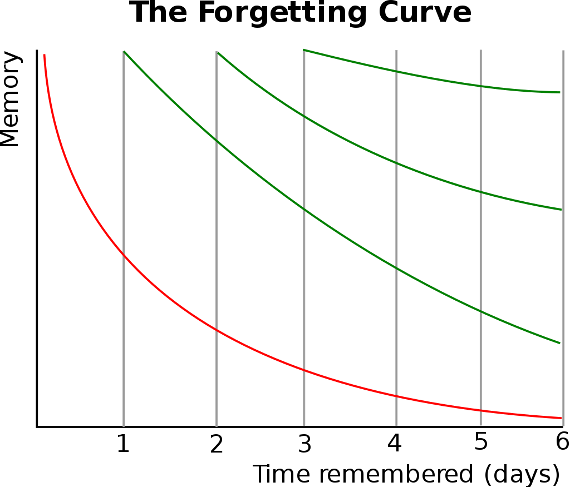 Figure reprinted from: Forgetting curve. (2022, November 28). In Wikipedia. https://en.wikipedia.org/wiki/Forgetting_curve